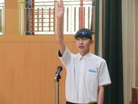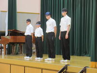 6月21日(水)に行われる県南水泳大会に向けての壮行会が行われました。本校からの出場者は4名。スイミングキャップにゴーグル姿で現れた選手は、大会に向けて熱い決意を立派に発表しました。短い練習期間でしたが、みんなで応援しています!がんばれ!大信の飛び魚!