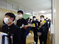3月13日(月)第55回卒業証書授与式が行われました。多くのご来賓の皆様、保護者の皆様、1,2年生に祝福され、37名が本校を卒業しました。見送りは、雨天ため校舎内での見送りとなりましたが、1,2年生、先生方からたくさんの拍手で見送られた卒業生でした。感動的な素晴らしい卒業式でした。ご卒業おめでとうございます。