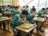 2月28日(火)の給食は、大信中学校希望献立でした。メニューは、清流豚カレーライス、牛乳、マカロニサラダ、クレープです。3年生のアンケート結果から人気の献立を取り入れた「思い出給食」。3年生のほとんどの生徒が、幼稚園の頃からずっと食べてきた思い出の大信の給食です。3年生が給食を食べられるのもあと数回です。感謝の気持ちをもっていただきました。