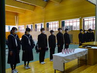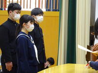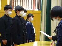 3月1日(水)、学校賞授与式が行われました。皆勤賞12名、精勤賞6名、功労賞31名、校内学習コンテスト最優秀賞11名、優秀賞63名を表彰しました。学校賞を受賞されたみなさん、おめでとうございます。受賞のかげにたくさんの方の後押しがあったことを忘れずにいてほしいと思います。