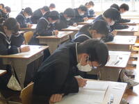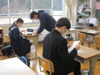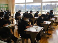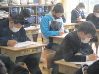 3月3日(金)、3年生のほとんどの生徒が県立高校前期選抜に挑む中、1,2年生は実力テストを行いました。1年間の総復習問題です。範囲は、今まで学習したほぼ1年分の学習内容となりますので、前日だけの勉強では時間が足りないと思います。計画的に学習を進めることができたでしょうか。自己採点を行い、復習をして、来年度のスタートに備えてほしいと思います。