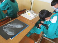 2月1日(水)4時間目の2年生の授業は美術でした。今日はシューズのデッサンを完成させることが目標です。細かなところに目を向け、担当の先生のアドバイスを受けながらて丁寧に仕上げていました。友達の作品を見ながらお互いに「うまいね」「なかなかいいんじゃない」「ここはどう描けばいいのかな」と話をしている様子も見られました。とても素敵な作品が仕上がったようです。
