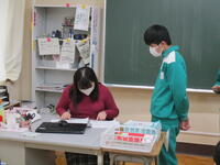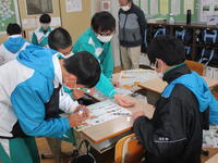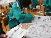 12月7日(水)の2年生の総合学習では、「今年1年を振り返って」「来年の意気込み」の2点について班ごとに話し合いました。話がまとまったら、新聞の文字を切り抜きその2点についてまとめます。班全員で新聞の記事に目を通しながら、よく見て必要な文字を探していました。とても楽しそうに芸術的な作品制作に取り組んでいました。