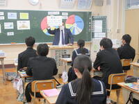 12月9日(金)3年生の社会科では、税理士の先生を講師としてお招きし、租税教室を行いました。税金はなぜ必要か、税金の仕組み、財政の仕組み、これからの社会と税についてなど、税の必要性と身近にある税についてお話していただきました。生徒は、税金クイズにも楽しそうに取り組み、一人一人が自分の収めた税がどのように使われているのかについて、関心を持つことができたようです。