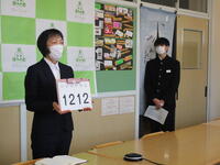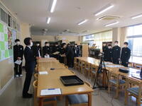 12月に入ってからの全校朝会は、オンラインで行っています。生徒会役員や各学級の係が機材等の準備や後片付けの担当です。今日、12月12日(月)の全校朝会は、漢字検定や東西しらかわ書道展の表彰、校長の話、校歌斉唱、委員会からの連絡を行いました。今日はオンライン2回目の全校朝会でしたが、とてもスムーズな進行でした。