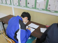 12月14日(水)総合学習の時間、3年生は卒業文集を書いていました。3年間の思い出としてどんなことを書いたのでしょうか。部活のこと?修学旅行のこと?それとも…。ペンで清書をしている生徒の中には何度も書き間違えてガッカリしている生徒もいたようです。文集委員も放課後に活動中です。すてきな卒業文集が完成しそうです。12月、もうそんな時期なのですね。