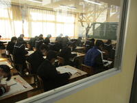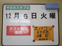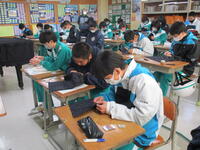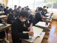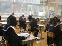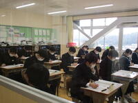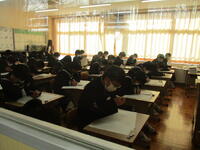 12月6日(火)、3年生が市学力調査を受けています。5教科のテストです。3年生は期末テスト、実力テスト、市学力調査…とテストが続いています。とりあえず、今日は今学期最後のテストということでホッとしている3年生も多いようです。いえいえ、3年生諸君、最終目標まで気を抜かず前進!