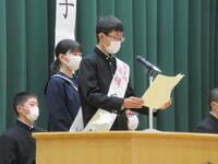 11月28日(月)に生徒会役員選挙立会演説会を行いました。今年度は5名の生徒が立候補しました。みんなのために何かしてみよう、何かに挑戦してみようという積極的な姿勢は本当に素晴らしいと思います。全校生徒は、やる気をもって立候補した5名の演説をしっかり聞きながら、生徒会のメンバーである自分たちがリーダーをしっかり支えようという覚悟を持つことができたようです。