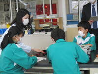 11月17日(木)1年生の5時間目の授業は音楽でした。今日は箏の授業です。音楽室からは箏の「さくらさくら」が聞こえてきました。一人一台の箏はありませんが、友達の演奏の指使いをよく見たり、指使いを一緒に歌ってみたり、とても楽しそうでした。演奏が終わると「お~上手!」「すごい!すごいよ!」とお互いに拍手をおくっていました。