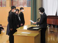 2022年11月14日 15時03分11月14日(月)の全校朝会は、表彰がたくさんありました。まつくつ杯少年野球大会3位、学校対抗福島県中学校新人ソフトテニス大会団体戦男子の部3位、大信地域青少年健全育成標語コンクール、校内書写コンクール…。先日は、大信地区文化祭での表彰もありました。今週から、東西しらかわ造形展も行われます。芸術の秋、スポーツの秋、読書の秋。これからも生徒の活躍はまだまだ続くことと思います。これからもとても楽しみです。