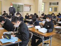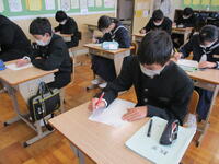 2022年11月2日 13時50分11月2日(水)3年生の総合学習の時間は、高校入試の面接試験についてDVDを見たり、県立高校の入学願書について説明を受けたり、受験に向けての心構えについて学級担任より説明がありました。話を聞く姿からは、緊張感が伝わってきました。まだ少々早いようですが、入学願書を書くにあたり、住所、保護者氏名、生年月日、受験学科…、今のうち色々と確認しておかなければならないことがあったようです。