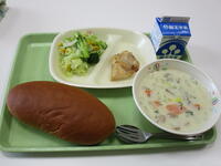 10月28日(金)の給食は、減塩黒糖パン、牛乳、鶏肉のマーマレード焼き、コールスロー、さつま芋のシチューでした。今日のさつま芋シチューは、本校で今年収穫されたさつま芋を給食に使っていただきました。さつま芋は体を動かすエネルギーになるだけでなく、お腹の調子を良くする食物繊維も多く含まれています。今日のさつま芋はとても甘くておいしかったです。大信幼稚園のみなさん、大信小学校のみなさん、いかがでしたか?