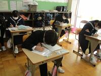 11月11日(金)に計算コンテストが予定されています。朝の時間を使い、全校生が計算コンテストに向けて練習問題に取り組んでいます。毎回目標点数を決め、目標に届かないときには放課後の時間を使って復習をしています。お互いに教えたり、教えられたり、互いに高め合う姿が見られます。