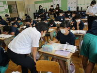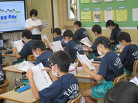 9月15日(木)の4時間目、1年生の教室では副担任の先生による道徳の研究授業が行われました。「むかで競走」という資料で、みんなで協力し合って学校生活を充実させていくことについて考えました。教師側の発問に一人一人がじっくりと考え、友達と話し合う場面では他の意見に耳を傾け、お互いを認め合いながら、真剣に取り組む生徒の姿が見られました。