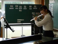 9月22日(金)は、教育実習最終日でした。音楽科の教育実習生が新人戦に参加していない生徒に専門分野であるフルートの演奏を聴かせてくださいました。とても素敵な演奏に生徒も真剣な表情。台風の影響により新人戦が順延となり、教育実習最終日に全校生で教育実習生にさようならのあいさつをすることができなかったことは残念でしたが、生徒にとっても今日はとてもよい思い出となりました。