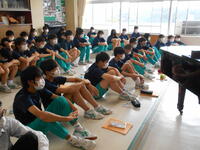 2022年9月26日 17時44分9月22日(金)は、教育実習最終日でした。音楽科の教育実習生が新人戦に参加していない生徒に専門分野であるフルートの演奏を聴かせてくださいました。とても素敵な演奏に生徒も真剣な表情。台風の影響により新人戦が順延となり、教育実習最終日に全校生で教育実習生にさようならのあいさつをすることができなかったことは残念でしたが、生徒にとっても今日はとてもよい思い出となりました。