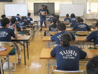 9月12日(月)6時間目、大信分署の方を講師にお招きし、今年度第2回避難訓練が行われました。8月下旬に防災教室を実施しましたので、その時に学んだことを生かして今日は実践訓練でした。避難後、全体会の中で代表生徒による消火訓練も行いました。災害が発生した場合に被害を最小限にとどめるためにも「平時に有事を思う」ことを大切にしていきたいものです。