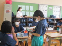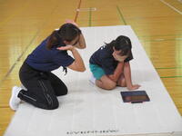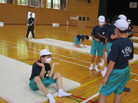 9月13日(火)2時間目、1年生は教育実習生の保健体育の授業でした。今日はマット運動です。後転や開脚後転について学習しました。タブレット端末をつかって動画を撮ってペアで動きを確認したり、教育実習生からアドバイスを受けたり、協力しながら学習に取り組んでいました。