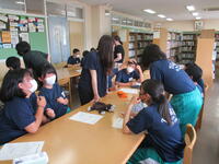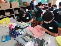 7月5日(火)5,6時間目、3年生は家庭科の「幼児とのかかわり」の学習の中で、動物のクッションを製作中です。自分で好きな形や色、デザインを決めて作業をスタートしました。まつり縫いやスナップの付け方など、お互いに声をかけながら楽しそうに学習を進めていました。