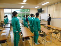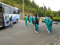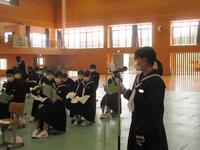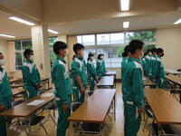 5月17日(火)県南陸上大会を終えて、帰校式を行いました。お世話になったバスの運転手さんや学校に残っていた先生方へのあいさつはとても元気よく気持ちのよいものでした。代表生徒から「今までの練習の成果を十分に発揮できました」という今日の大会の報告がありました。大会では、競技に臨む生徒も応援する生徒も一生懸命な姿がとても素晴らしかったです。