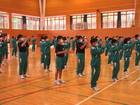 2022年5月17日 17時53分5月17日(火)県南陸上大会を終えて、帰校式を行いました。お世話になったバスの運転手さんや学校に残っていた先生方へのあいさつはとても元気よく気持ちのよいものでした。代表生徒から「今までの練習の成果を十分に発揮できました」という今日の大会の報告がありました。大会では、競技に臨む生徒も応援する生徒も一生懸命な姿がとても素晴らしかったです。