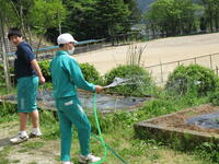 5月17日(火)に予定されている県南中学校陸上大会へ向けて、大会に参加する生徒は朝の練習に励んでいます。今日も長距離、短距離、砲丸投げなどそれぞれの種目に合わせての練習です。バトンパスやスタートなど、お互いにアドバイスしたり、走る生徒に「がんば~っ!」と声をかけたり、お互いに高めあう姿が見られます。朝、陸上練習に励む生徒の姿を見て、「あぁ、今日も一日が始まるな。」と思う毎日です。