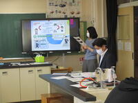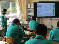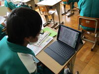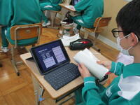 5月11日(水)5,6時間目、2年生は総合的な学習の時間で職業調べの発表を行っていました。それぞれが興味ある職業について、タブレットのワークシートに新聞形式でまとめました。医師、看護師、パティシエ、建築士、プログラマー、教師、…など調べた職業は様々です。各自が書いた新聞をタブレットで共有しながら、発表者は要点をまとめて短い時間で発表するスタイルです。それぞれの話をしっかりと聞き、感想を述べていました。