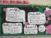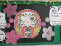 朝の3年生の様子を見ていると、明日の入試本番に向けて少々緊張気味でした。友達と話をしたり、授業を受けたりしているうちに徐々に緊張がほぐれ、笑顔が見られるようになりました。保健室脇の廊下の掲示板には保健室より3年生へ愛のメッセージです。