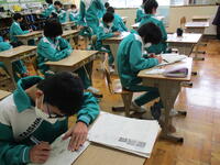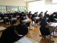 3月3日(木)、今日は県立高校前期選抜試験です。3年生がほとんどいない学校は、なんだか静かで寂しいです。3年生が入試に挑んでいる今日、1,2年生は実力テストです。1,2年生も来年度を見据えて、学習面、生活面、今できる精一杯の準備をしています。(休み時間にテスト勉強をする生徒も増えてきました。)