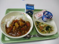 1月31日(月)、保健給食委員の生徒は、毎日、配膳室の片づけを協力して行っています。大変手際よく、スムーズな取り組みです。とてもありがたいです。1月最後の給食のメニューは、清流豚カレーライス、ほうれん草と卵のあえもの、ヨーグルトでした。清流豚はいつも通り柔らかく、とても美味しかったです。生徒が大好きなカレーライスに、ヨーグルトもついて最高の献立でした。