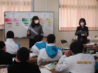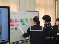 2月4日(金)1年生の3,4時間目は家庭科の授業でした。中学生の1日に必要な種類と概量を理解し、1日分の献立作成の方法について理解することが学習の目標です。今日は具体的に、中学生に必要な栄養量を満たす昼食の献立を考えました。栄養教諭の先生にもT2として参加していただき、給食の献立作成の工夫や献立作成に必要な視点についてお話を聞くことができました。食べたいものはたくさんあるのに、栄養のバランスを考えると献立作成はなかなか難しかったようです。
