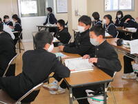 2月2日(水)6時間目、昨年度の卒業式のビデオを見ながら式の流れを確認している学年がありました。また、卒業式の意義や心構えについても担任から話をしていたようです。3年生が主役の卒業式ですが、全校生で素晴らしい式にしたいと思います。今年度も昨年度同様、新型コロナ感染拡大予防対策を十分に行い、短い練習時間で本番を迎える予定です。