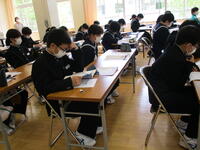 2022年4月28日 17時27分4月28日(木)午後から授業参観、PTA総会、学年保護者会を行いました。今日は、全学級、学級担任の道徳の授業を参観していただきました。じっくりと考えたり、自分の考えを述べたり、真剣に自分と向き合う生徒の姿が見られました。それぞれの学級の雰囲気を感じていただくことができたのではないかと思います。保護者の皆様には新型コロナ対策等、ご協力いただき、ありがとうございました。