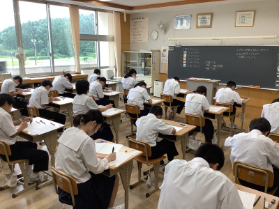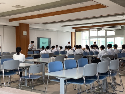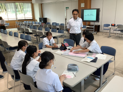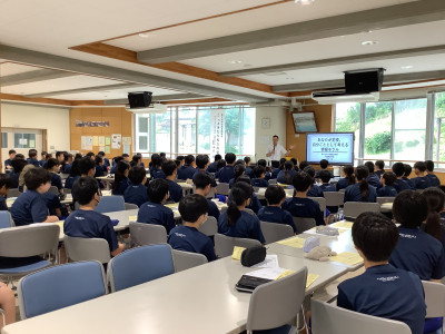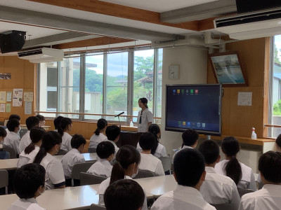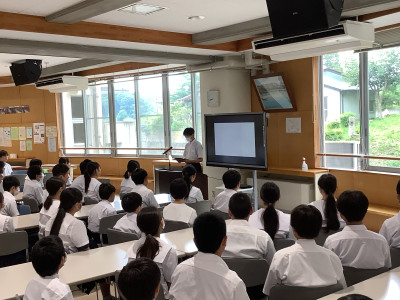 学校給食センターの川音さんと角田さんを講師に「一日の生活リズムを整えた生活をしよう」という課題のもと、自分の1日の生活を振り返ってより良い生活について考えました。