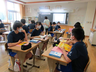 2020年6月25日 19時23分本日は、英語科の研究授業が1年生と2年生で実施されました。1年生では英語を使って高校入試の面接を題材に、一般動詞の使い方を学習しました。面接方式であるため実際に会話をしながら学ぶことができ、実生活に使える英語を身につけることができました。2年生では、空港での入国審査の場面を題材に未来形の使い方などを学習しました。より厳重な入国審査のために試行錯誤しながら自分でオリジナルの質問を作っていました。